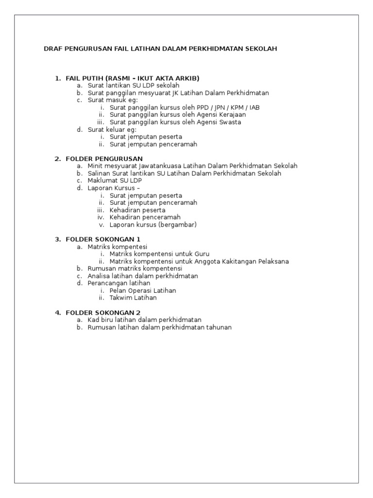 Draf Pengurusan Fail Latihan Dalam Perkhidmatan Sekolah Pdf